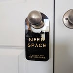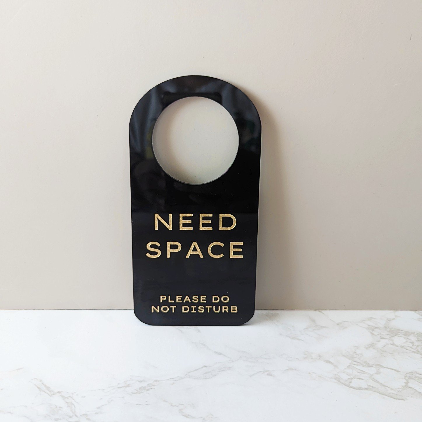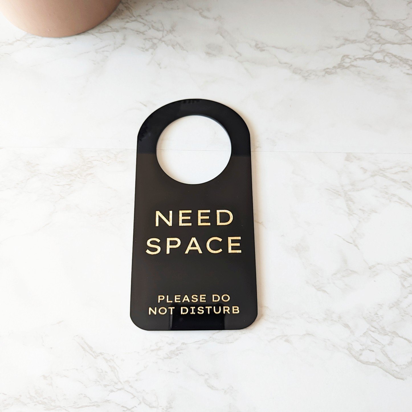 A smaller version of our original, very popular doorknob sign! Laser engraved and cut, with the text filled w/ your choice of silver or gold leaf paint. The perfect functional way to display your ask for privacy.